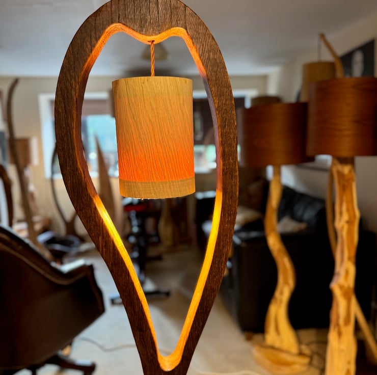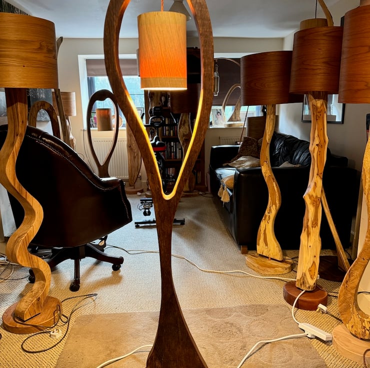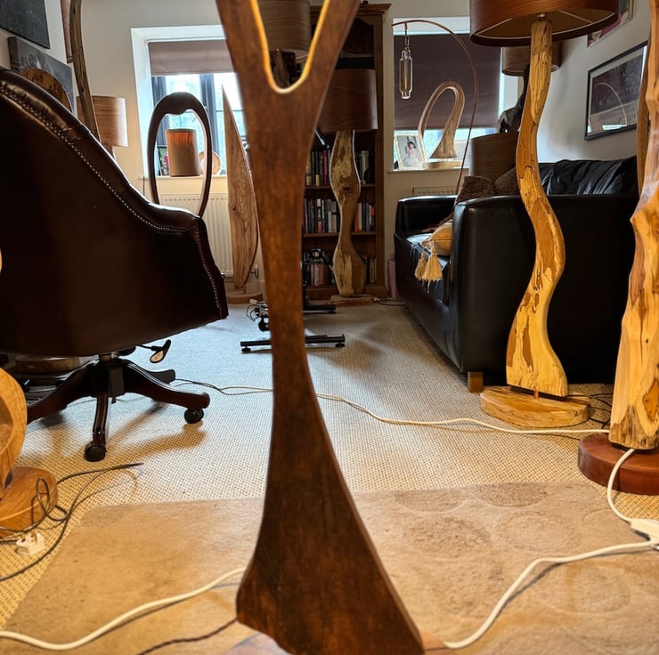 The design of my lamps is largely dictated by the type of wood , its grain pattern and size. I work closely with my friend Nigel who supplies my wood. This lamp is made from reclaimed railway sleepers