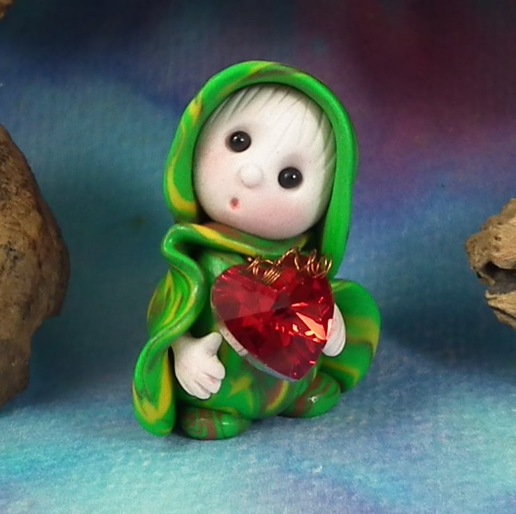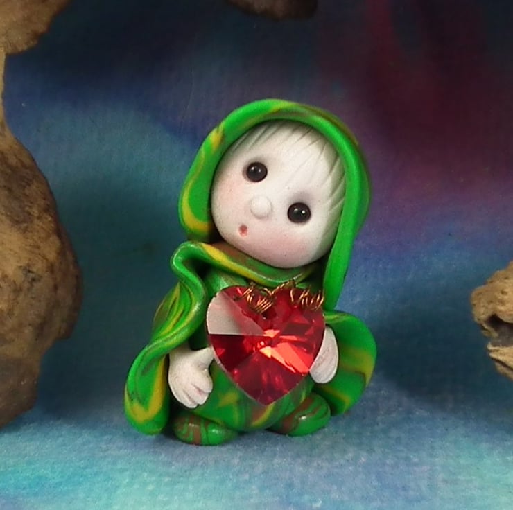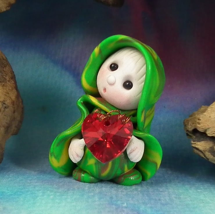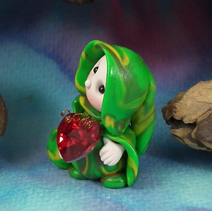 Ruby is a tiny Valentine Gnome with red crystal heart ...