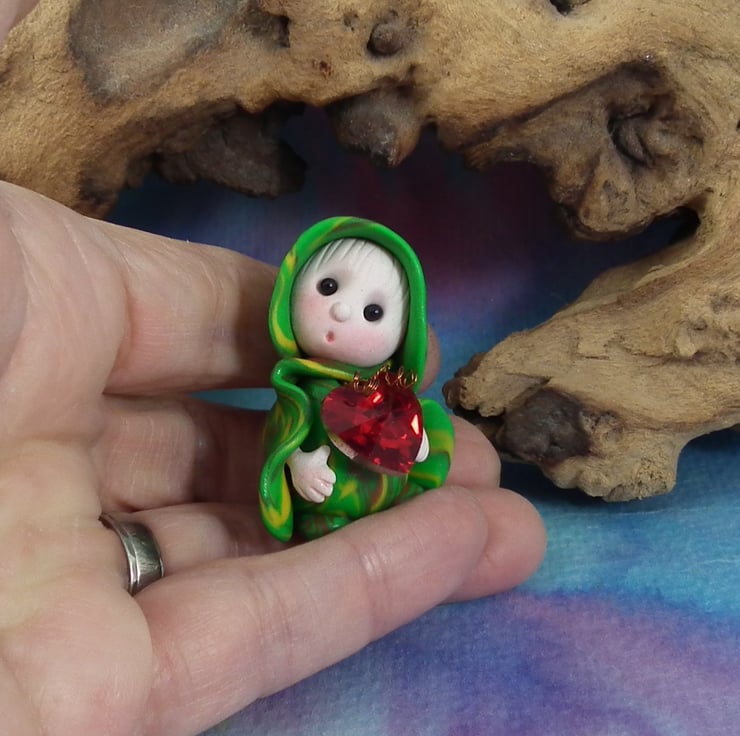 This is a 'one of a kind' creation having been entirely handmade without the use of moulds here at my studio on the Sussex Coast. Modelled with artist blend polymers, blushed before sealing with lacquer, Ruby has sparkling black onyx eyes and Spring robes. Ruby the Valentine Gnome is just one and a half inches tall.