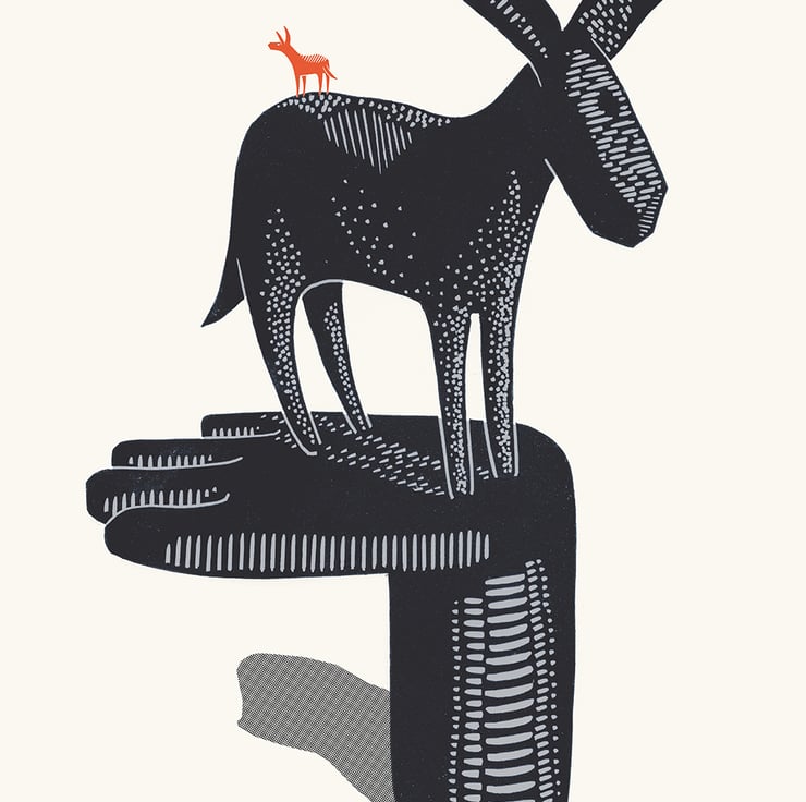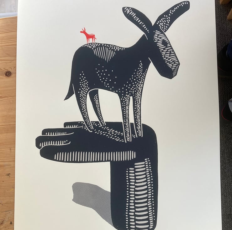 This is from my second series of prints featuring donkeys exploring a sculptural landscape. I created the prints originally for my first major solo exhibition, entitled 'Donkey Nonsense' at The Millennium Gallery in Sheffield in 2023.