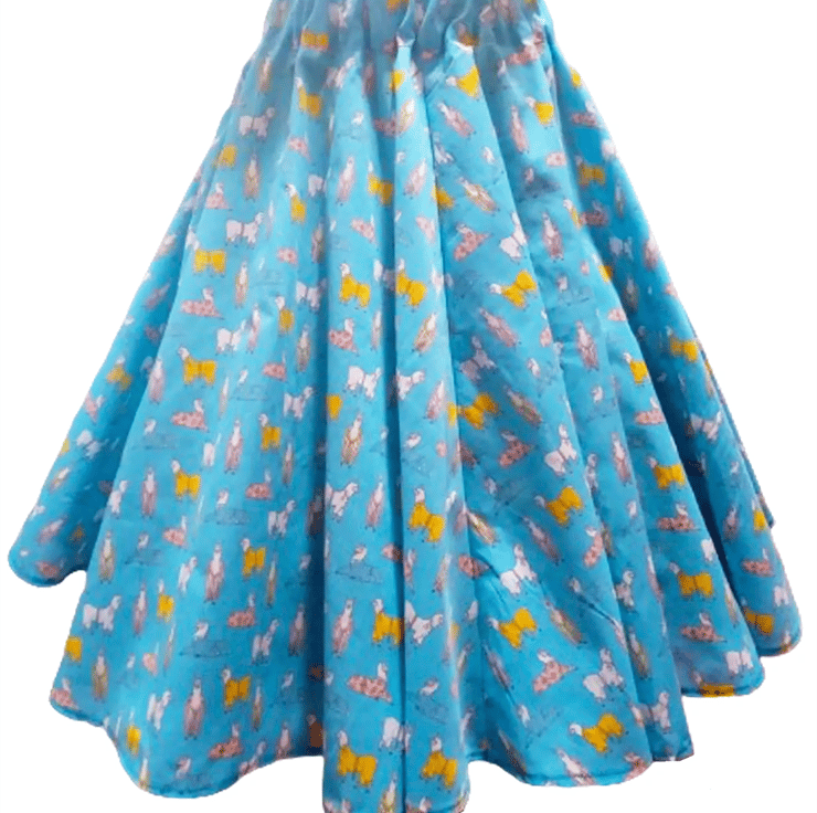 Handmade in Wales 1950s Vintage retro rockabilly full circle skirt, elasticated waist This skirt is made in a polycotton llamas print. It will fit multi sizes dues to the elasticated waist. 28" Long from top of waistband