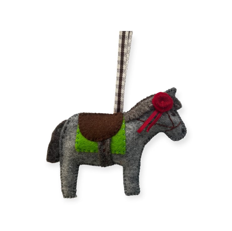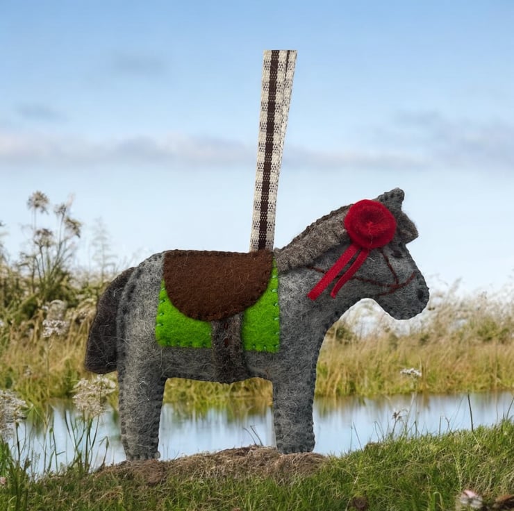 This mid grey coloured felt horse, hanging decoration, would be a fabulous gift for anyone who loves horses or ponies.