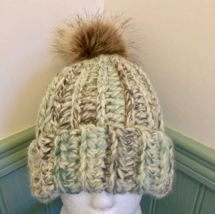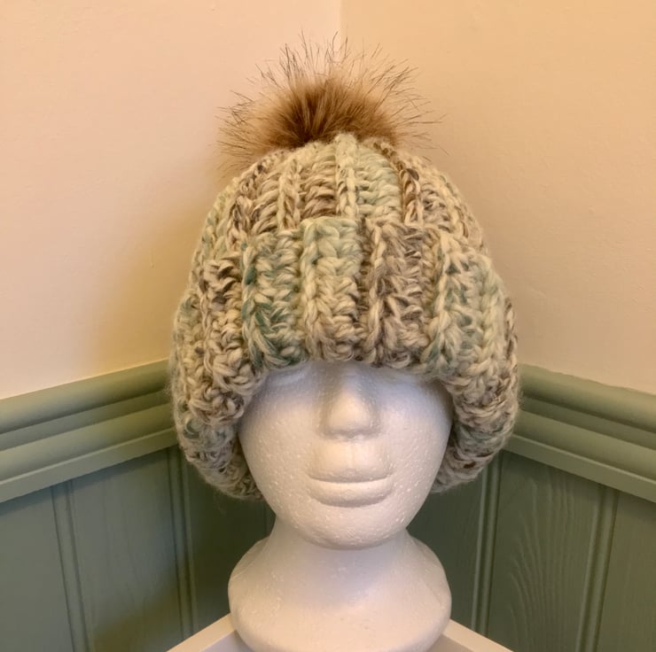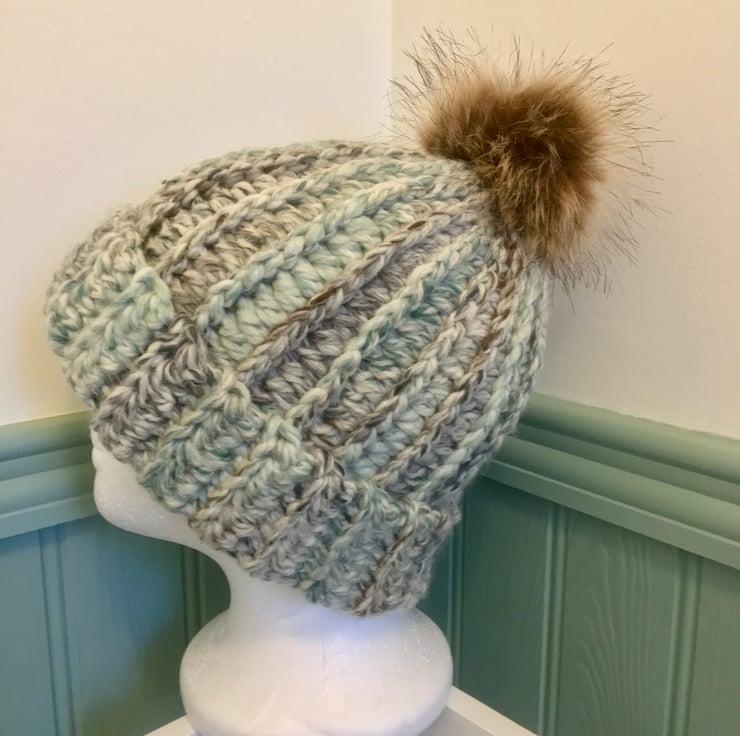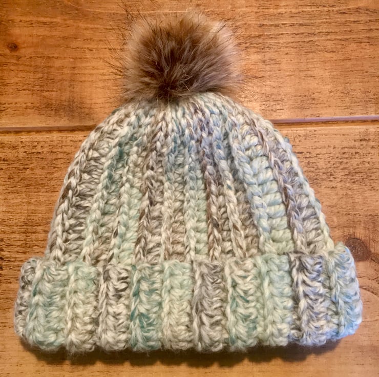 Handmade crochet chunky beanie hat in lovely chunky wool in the colour of seaglass