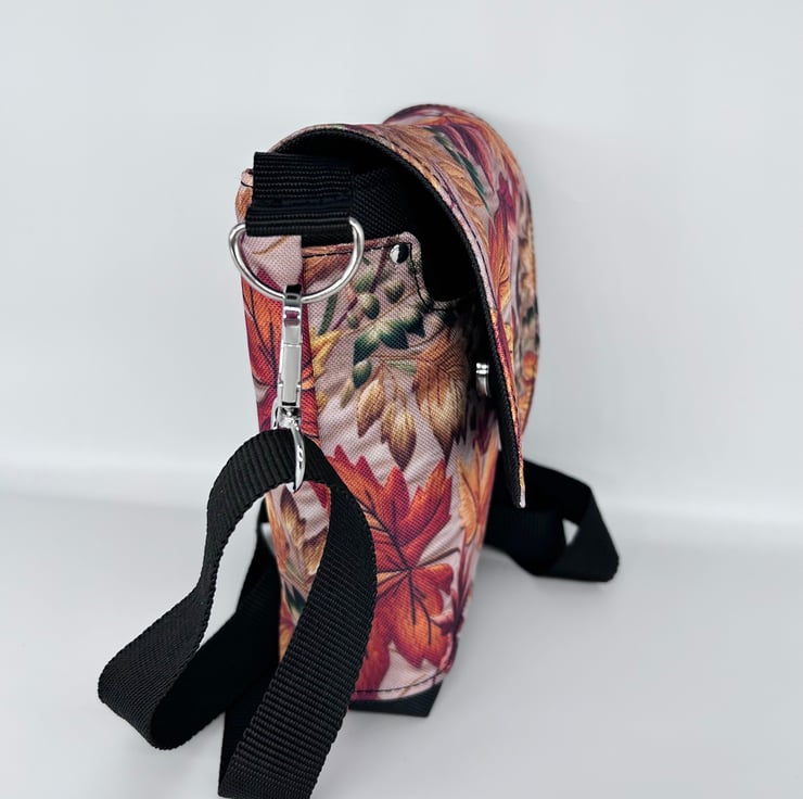Cross body bag with Autumn leaves with adjustable strap. Waterproof canvas.