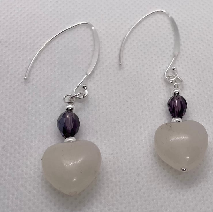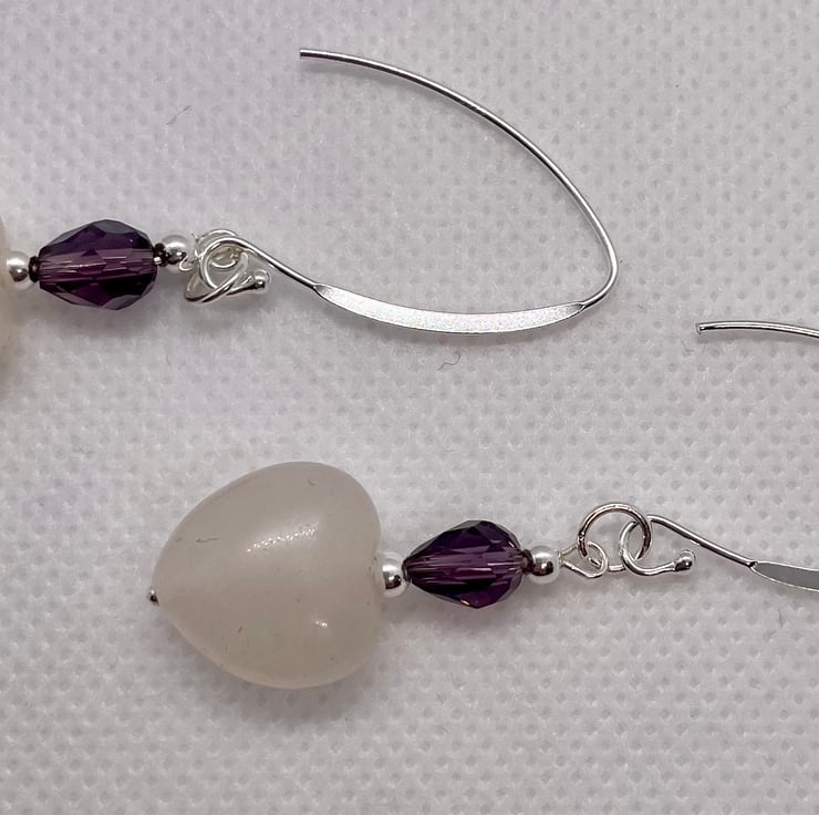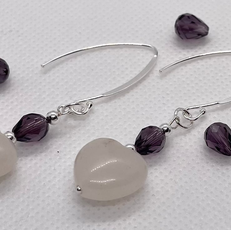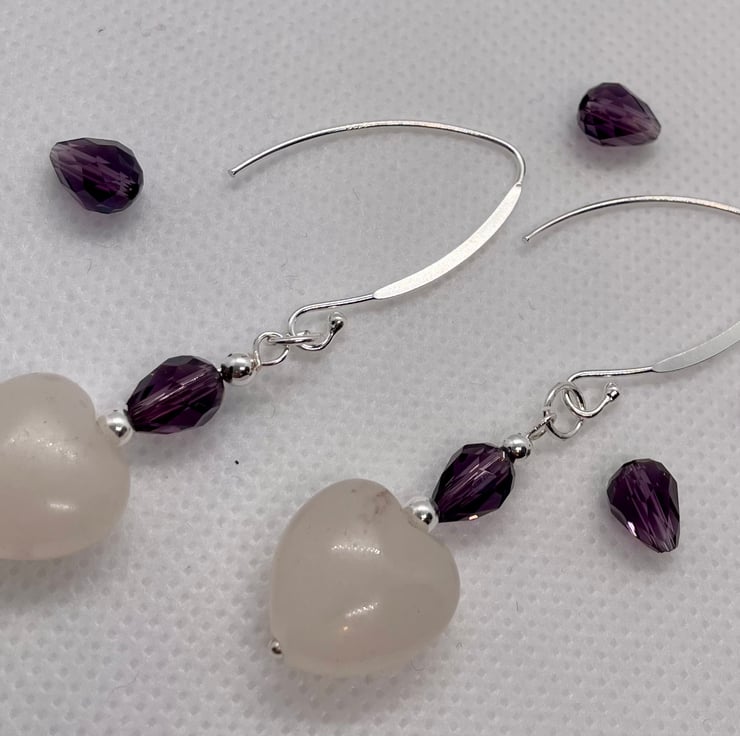 These lovely rose quartz and amethyst coloured Swarovski crystal earrings would make a lovely Valentines gift. Made with sterling silver Marquise French hooks and components .The earrings drop is approximately 6 cms.