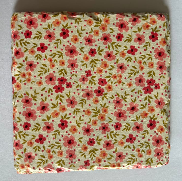 Each item is made from a slate coaster and napkin decoupage. They are finished with heatproof varnish to make them hardwearing and give them a lovely shine.