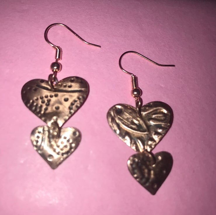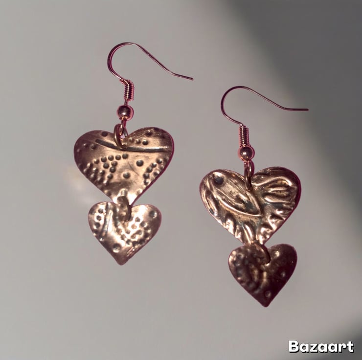 Double heart oxidised and embossed copper earrings - Perfect gift for 7 yr Anniversary or Mother’s day.