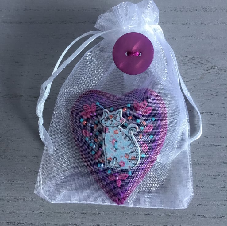 This Hand Embroidered Cat Brooch is gift wrapped in an organza bag, decorated with a pink button. An ideal birthday, friendship, thank you gift…..especially for Cat lovers or a Cat Mum who loves their cat……or to treat yourself…..