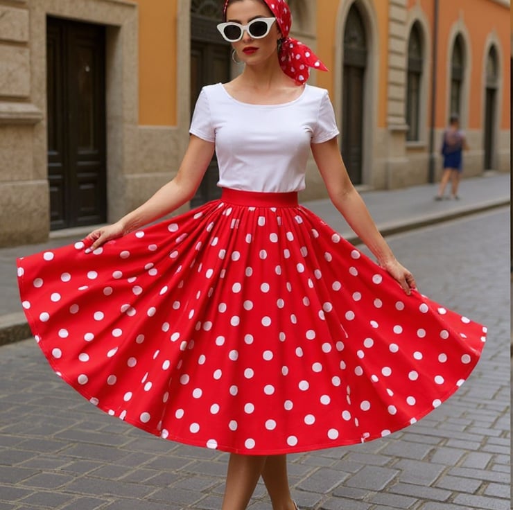 1950s Vintage Retro Rockabilly circle Skirt Red & White polka dots women's 10-26