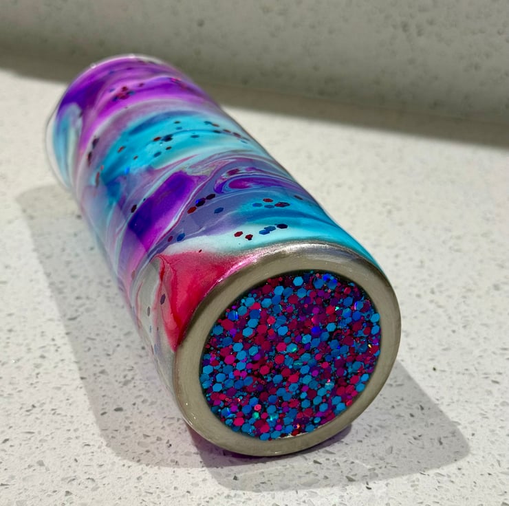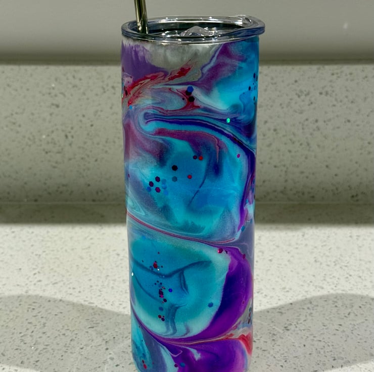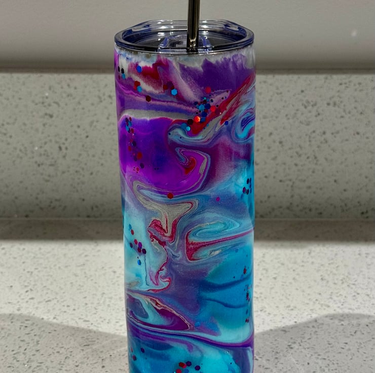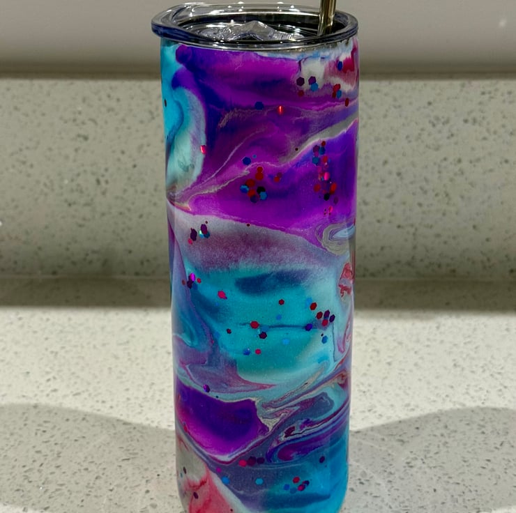 Tumbler is unique would be great for a gift or to just treat yourself. Handcrafted with love, it combines durable stainless steel with stunning resin art, making each piece truly one of a kind. Perfect for keeping your drinks hot or cold, this stylish tumbler complements any lifestyle. At Made With Love by Sue, we believe in creating products that bring joy and add a personal touch to everyday moments.