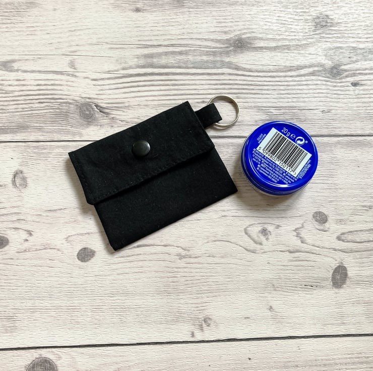 Plain black colour round lip balm keyring, keychain, lipstick holder.