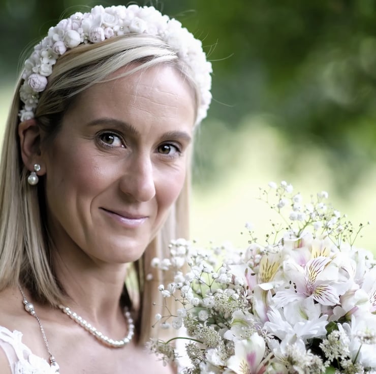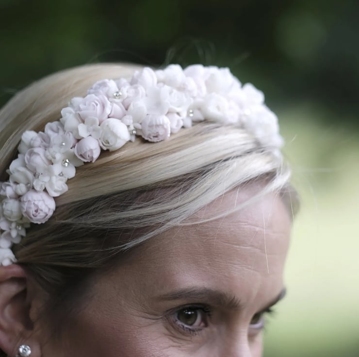 Placed within some flowers, there are light pink crystal beads and tiny white crystal beads that shimmer when the headband moves. There are also silver faceted crystals sewn into a few flowers that give an extra shine. This beautiful statement piece is perfect for a Bride or Bridesmaid.