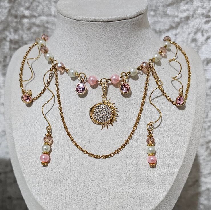 The Sunlit Rose Fantasy-inspired necklace is a breathtaking piece that combines elegance with a touch of whimsy.