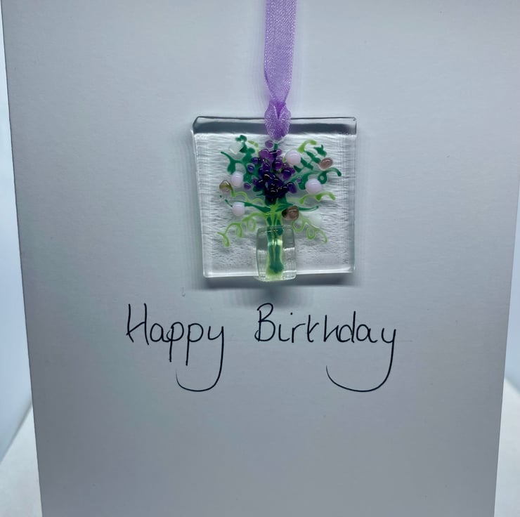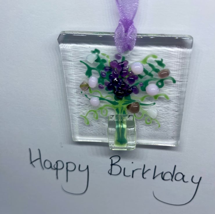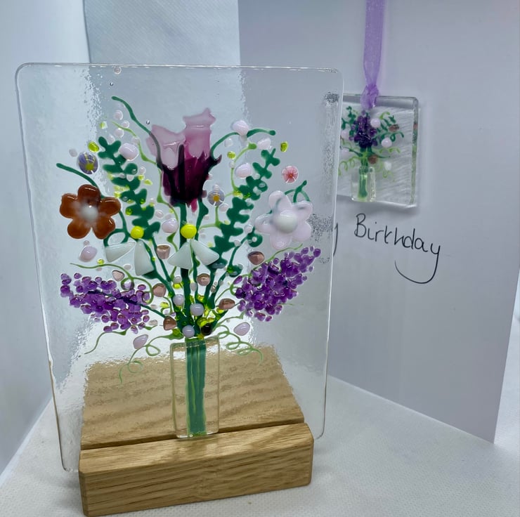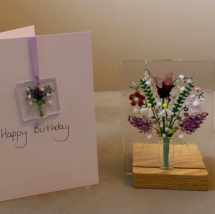 There is also the option of a matching card with a fused glass mini vase of flowers which can be detached and kept as a keepsake.