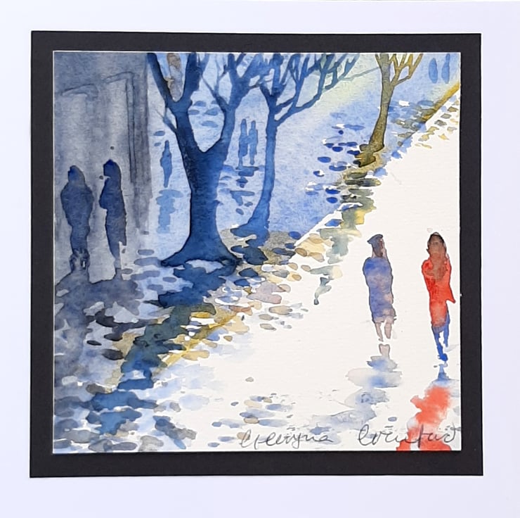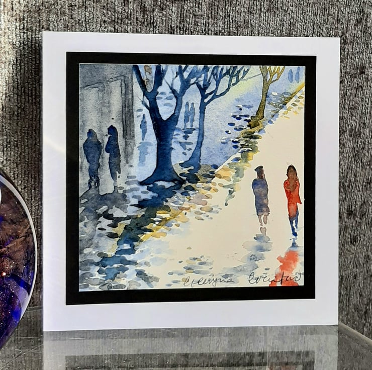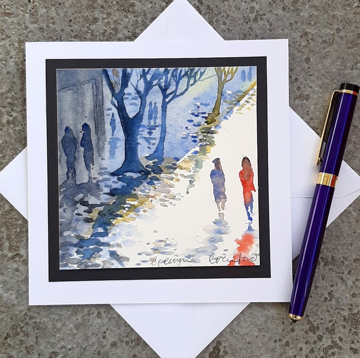 Beautiful handpainted watercolour card. Do you walk in the sun or the shade?