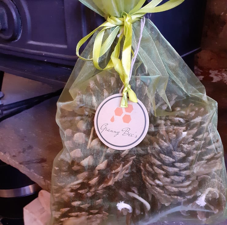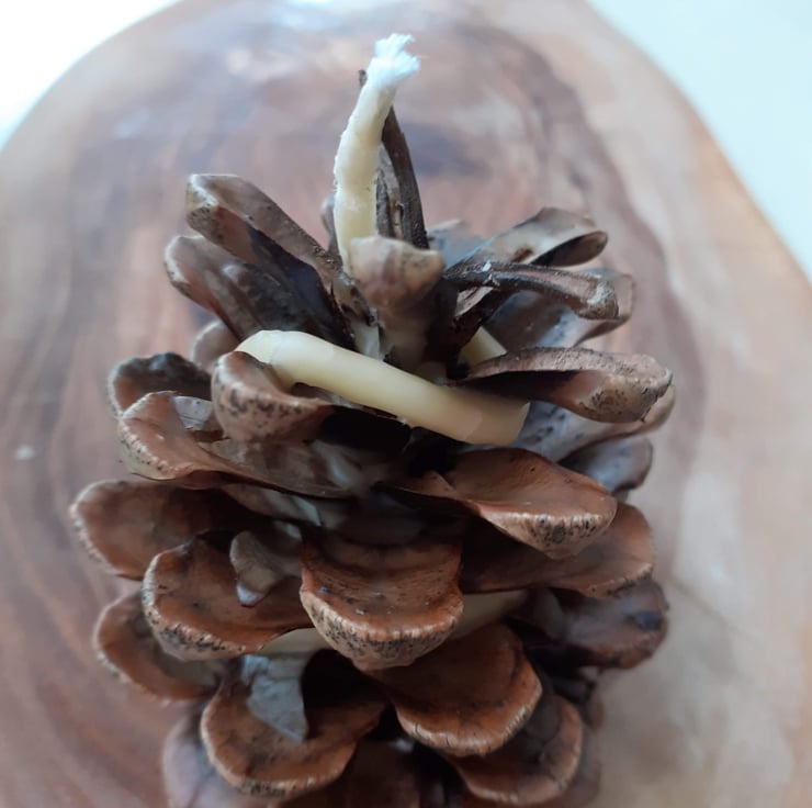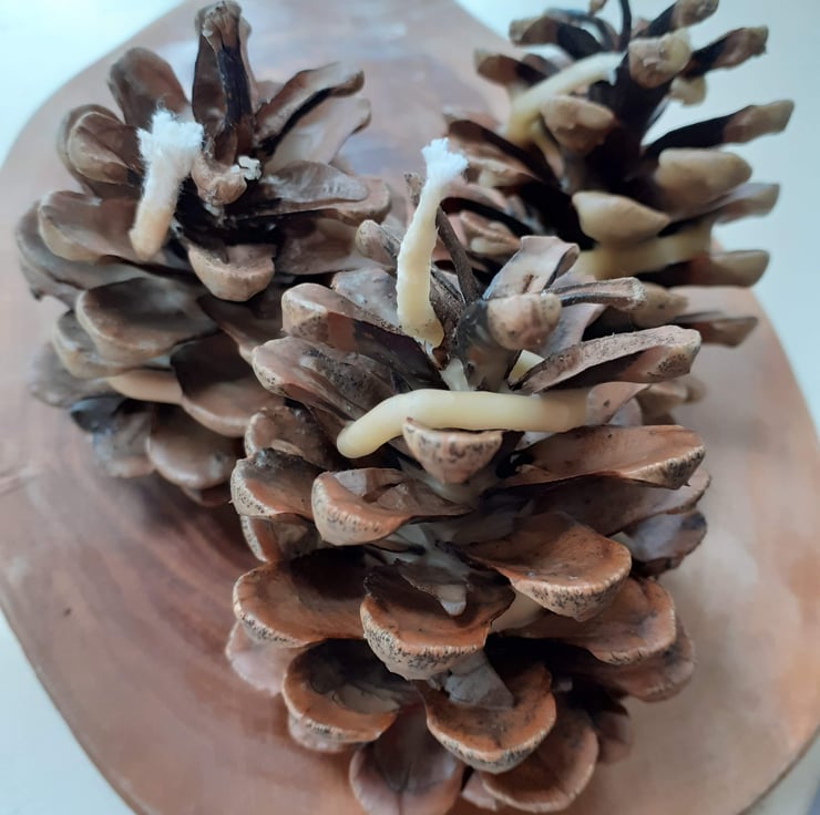 I often have wax left over from making candles that is not quite clean enough and I don't want to waste it. One day on a dog walk I spotted lots of cones on the ground and the idea was born! They smell so nice that it is sometimes hard to burn them!