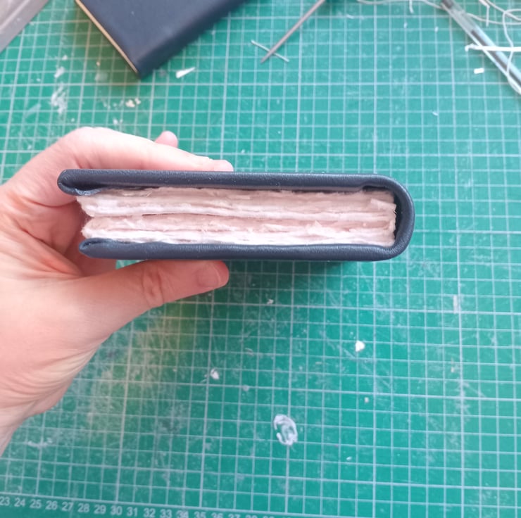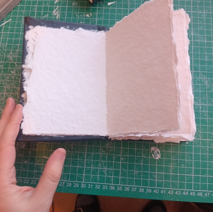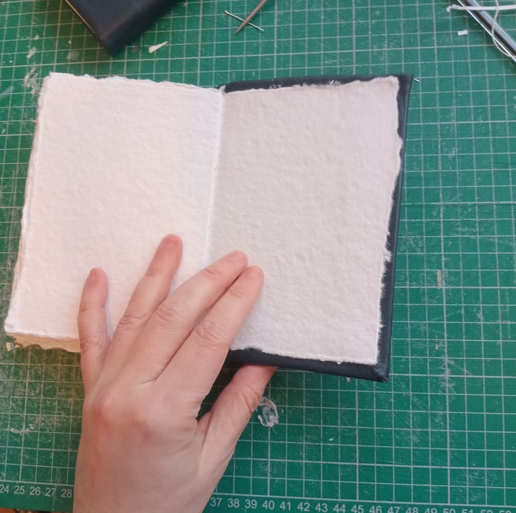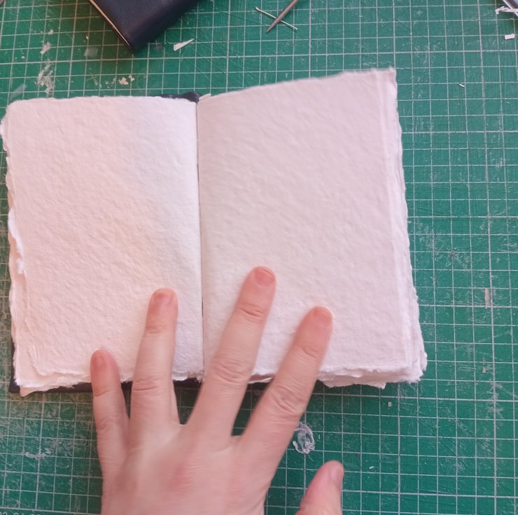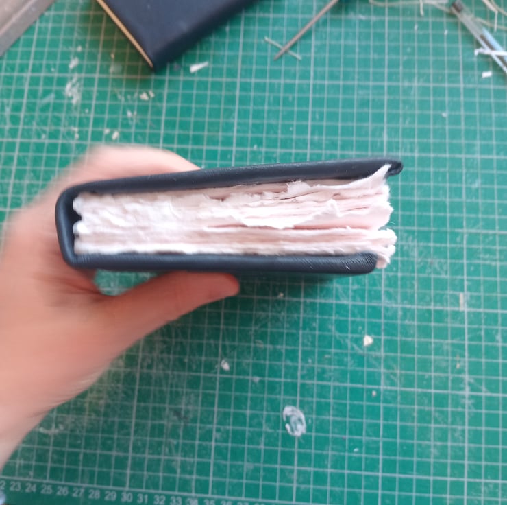 Made with dark blue leather and hand torn indian cotton rag paper, this a6 sketchbook has plenty of pages for a watercolourist to play with
