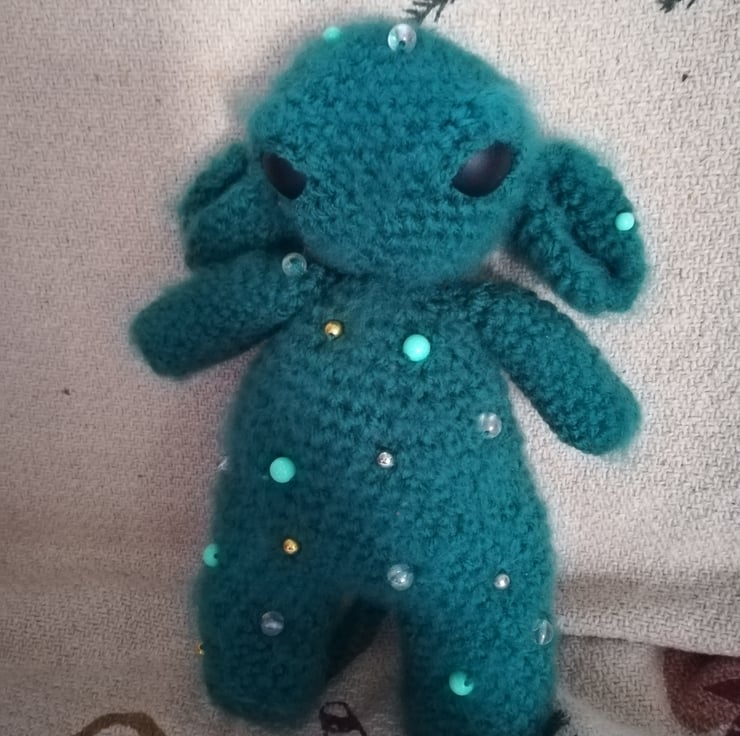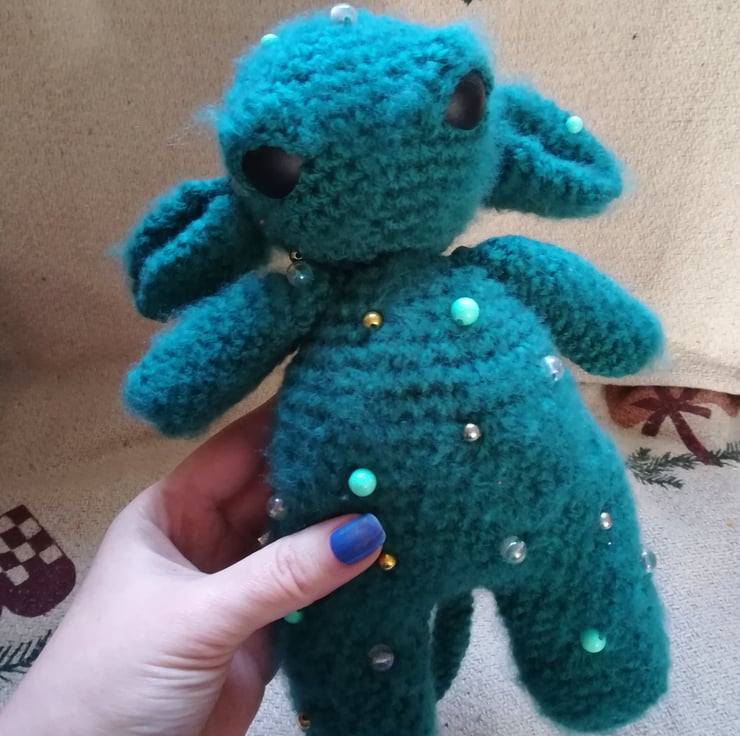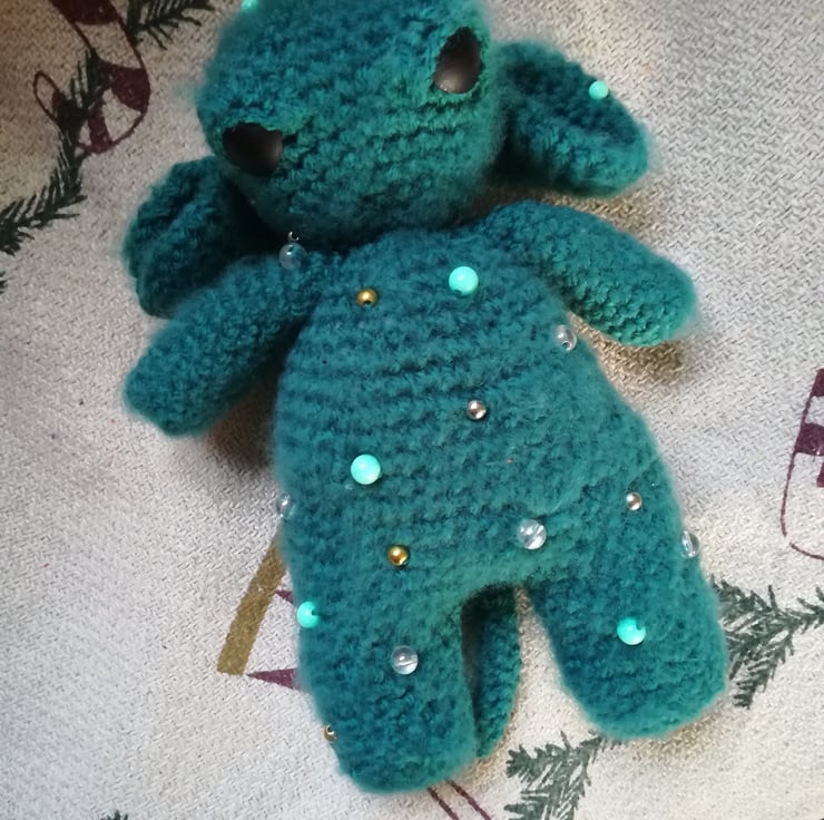 This special emerald cityedition is made using a lovely deep teal green yarn. With added beads.