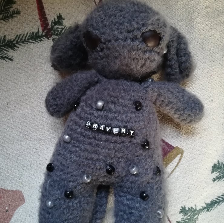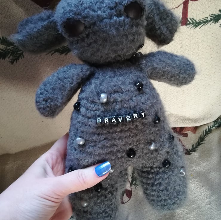 This special Storm edition is made using a lovely speckled yarn. With added beads that say bravery.