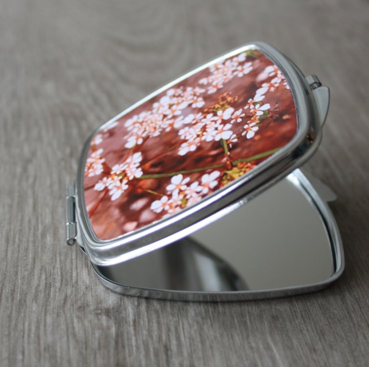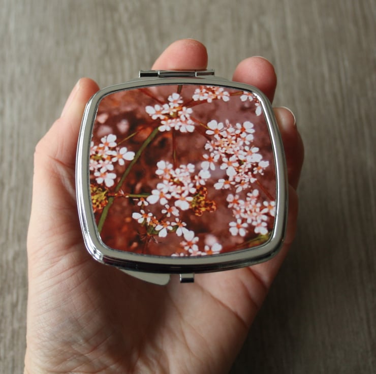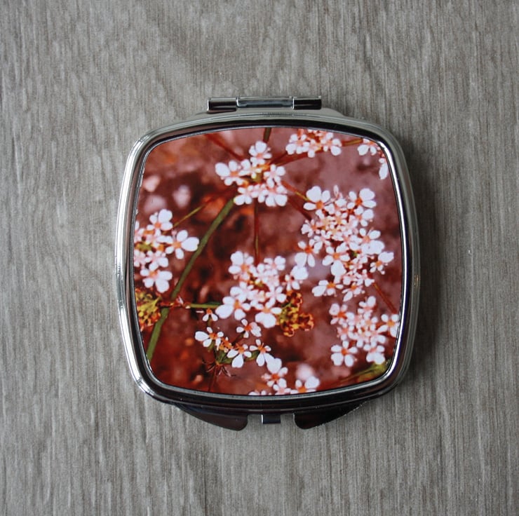 I take inspiration from the countryside close to home in the Staffordshire Moorlands. This image was taken from one of my original photographs which I edited to give this vintage style sepia toned finish. I then transferred the print to the metal lid of the mirror using sublimation printing.