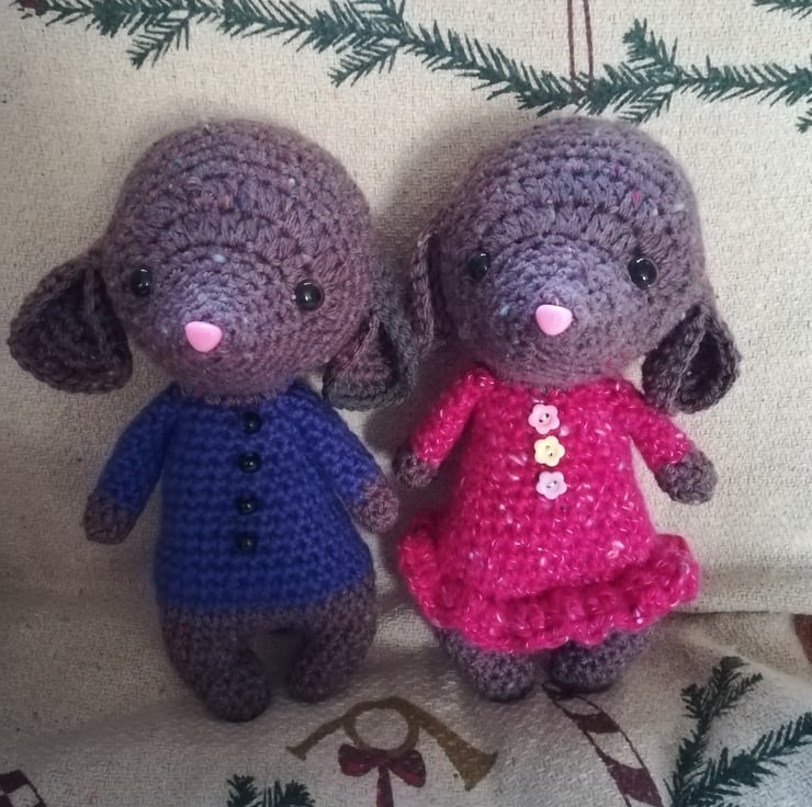 The mice are crocheted using a lovely mottled yarn that gives them a vintage look and aged feel.