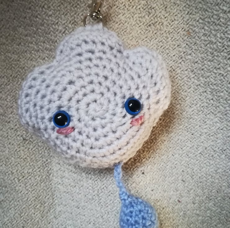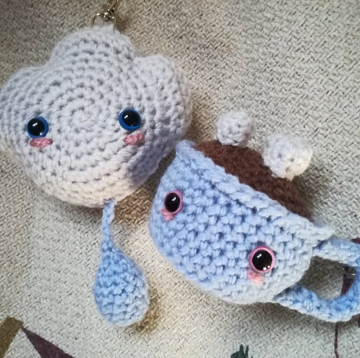 There is the cloud with a raindrop and a cup of hot chocolate each with an adorable little face.