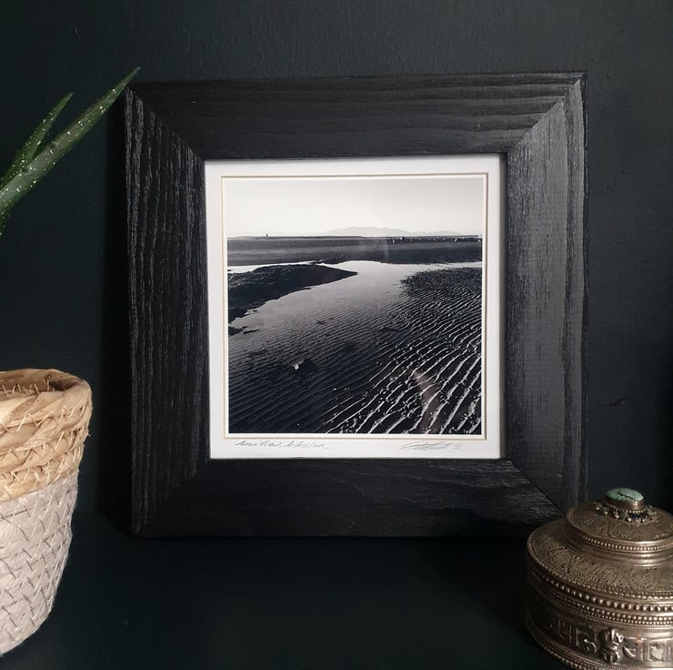 Fine art archival photographic print mounted in acid free matt & framed in a sourced & upcycled black wooden frame.