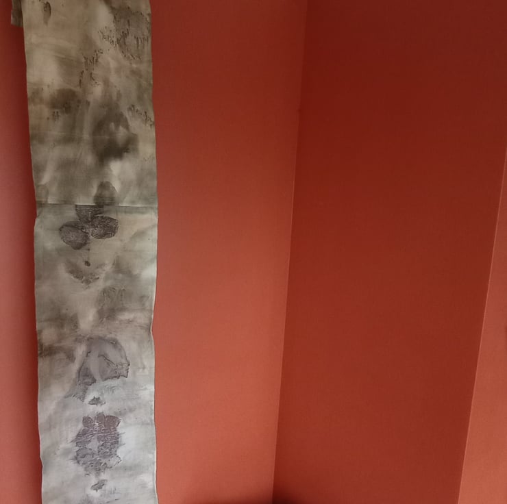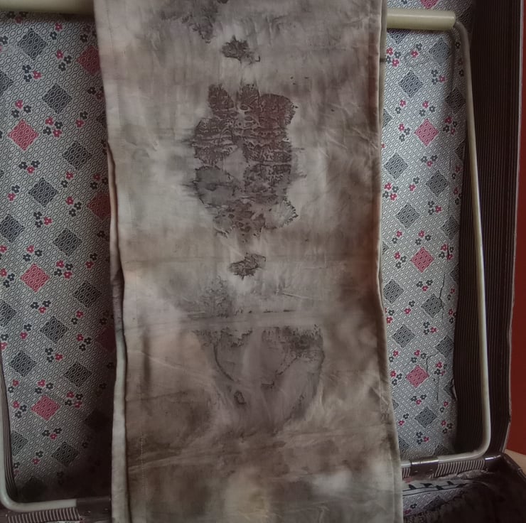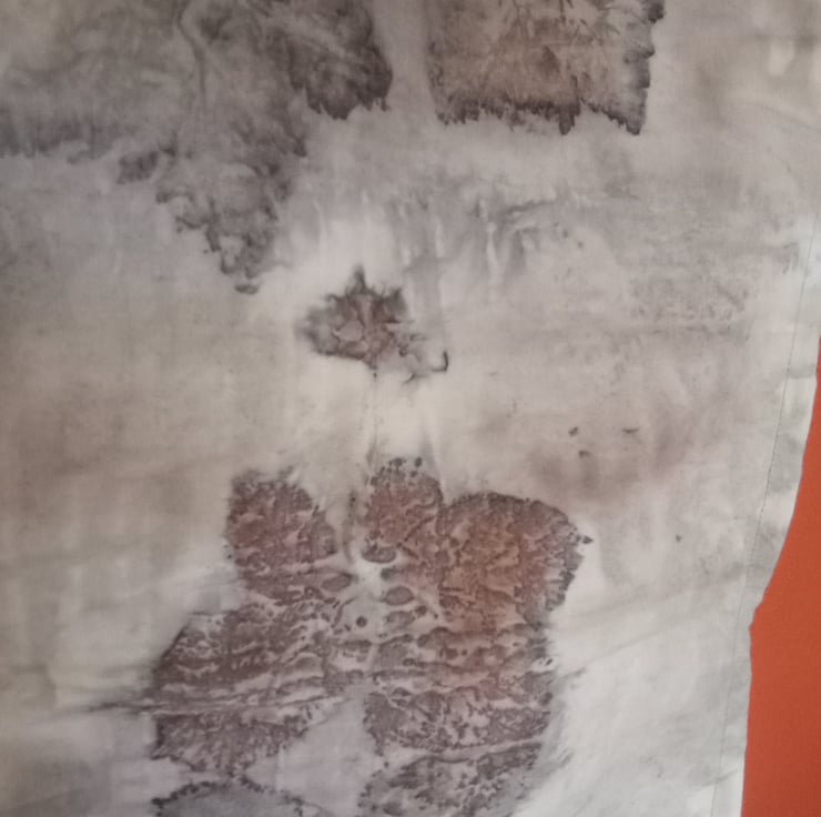 This one of a kind Botanical printed scarf is made from organic cotton. Printed using plants from my garden and a rust solution.
