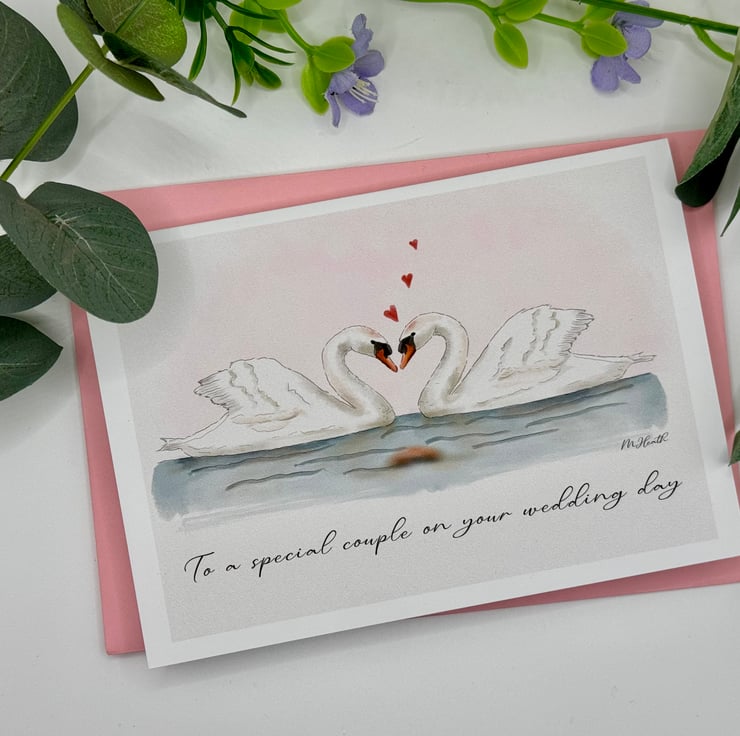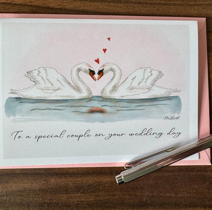 “To a special couple on your wedding day ” - Wish someone a happy wedding day with a unique card . This is a cute card perfect for bird/swan lovers, or fans of nature!