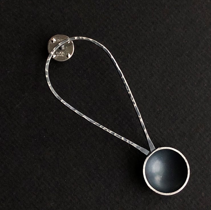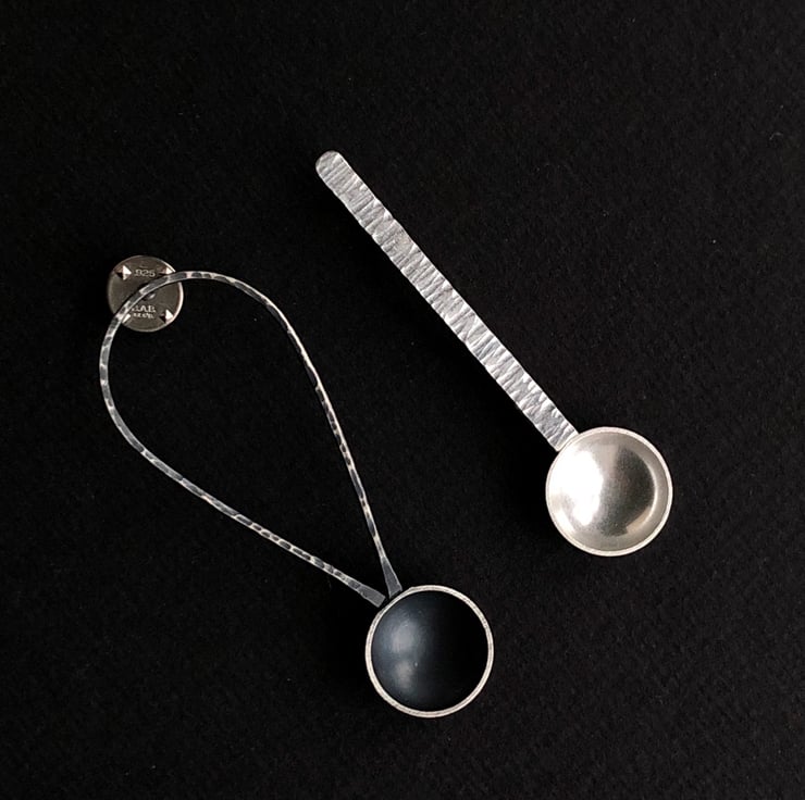 These pins are inspired by my collections of spoons and some of the larger spoons I have made. This spoon has been constructed from wire and sheet to create a unique piece.