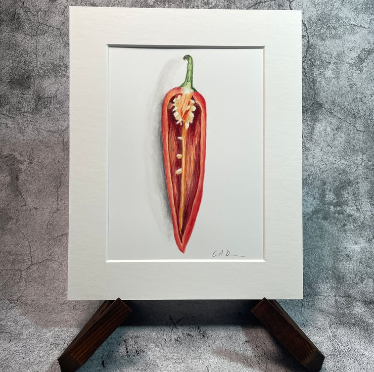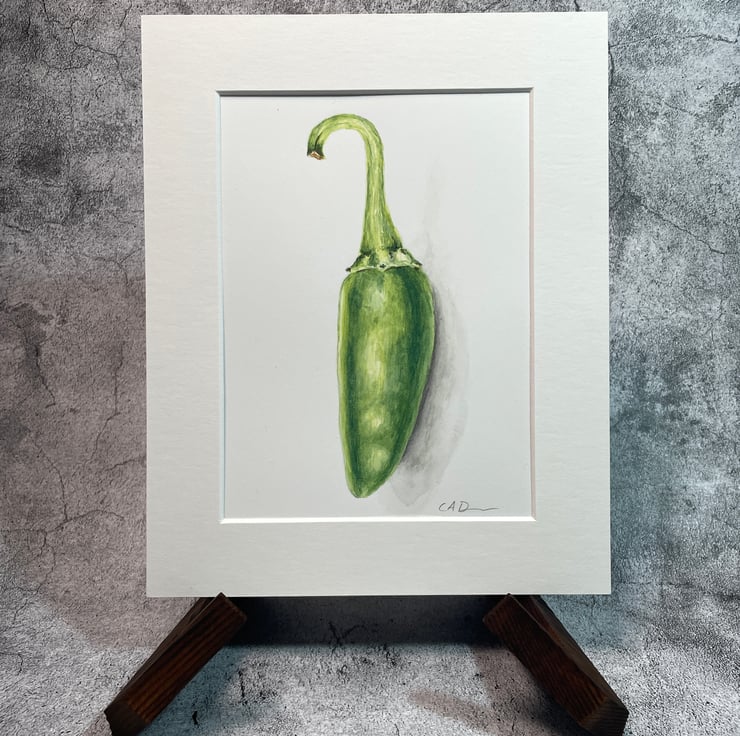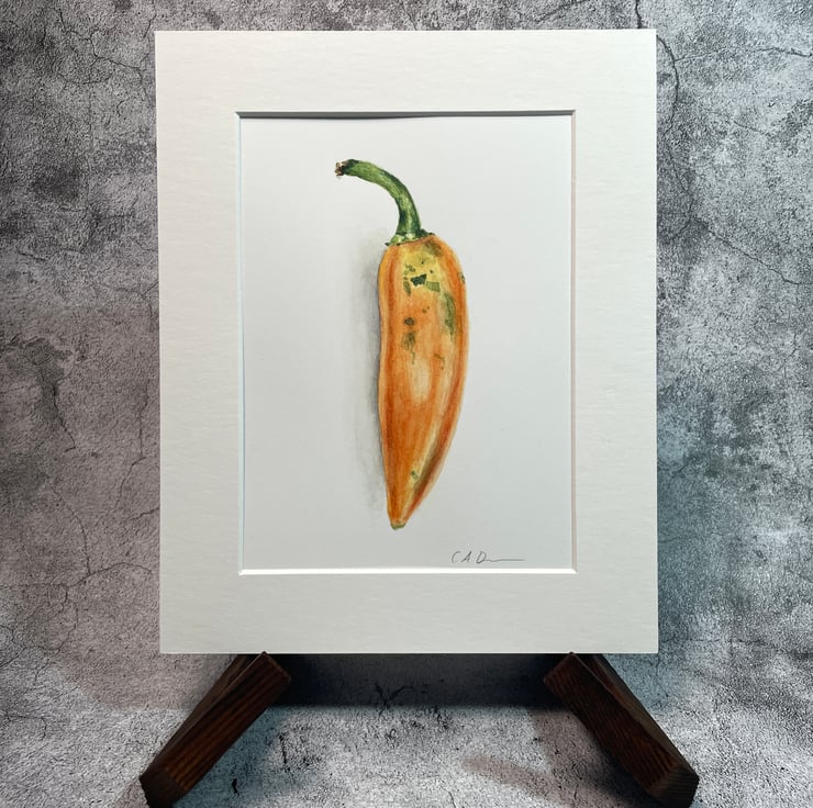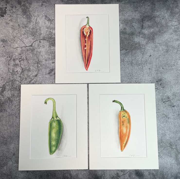 This listing is for three original watercolour paintings of red, green and orange chilies. They are handpainted with professional grade watercolour paints and supplied individually mounted in acid free archival mounts ready to frame in 8x10 inch frames of your choice.