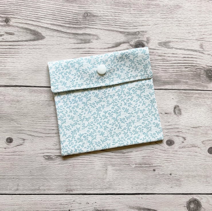 Discreet sanitary pouch. Feminine products holder. Ivory & duck egg ditsy cotton