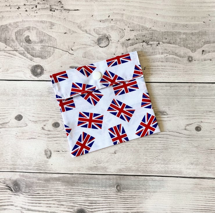 Great Britain Union Jack themed discreet sanitary fabric pouch.