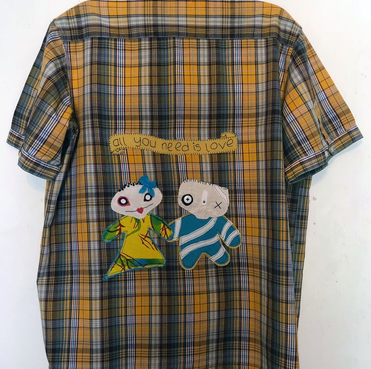 Born from a love of comfy men's shirts and a desire to brighten them up, this collection of 're-created' wearable art shirts transforms everyday clothing into playful, artistic pieces.