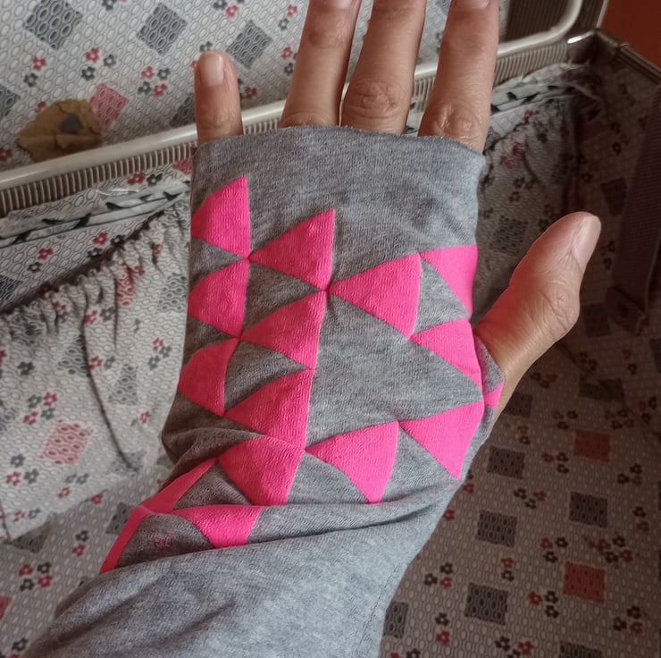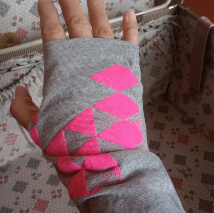 Hand Silk Screen Printed Grey Cotton t-shirt Jersey Fashion Wrist Warmers.