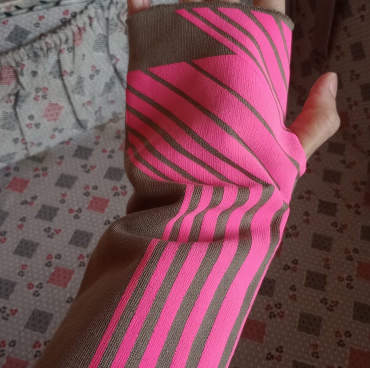 Hand Silk Screen Printed Organic Cottont Jersey Wrist Warmers.