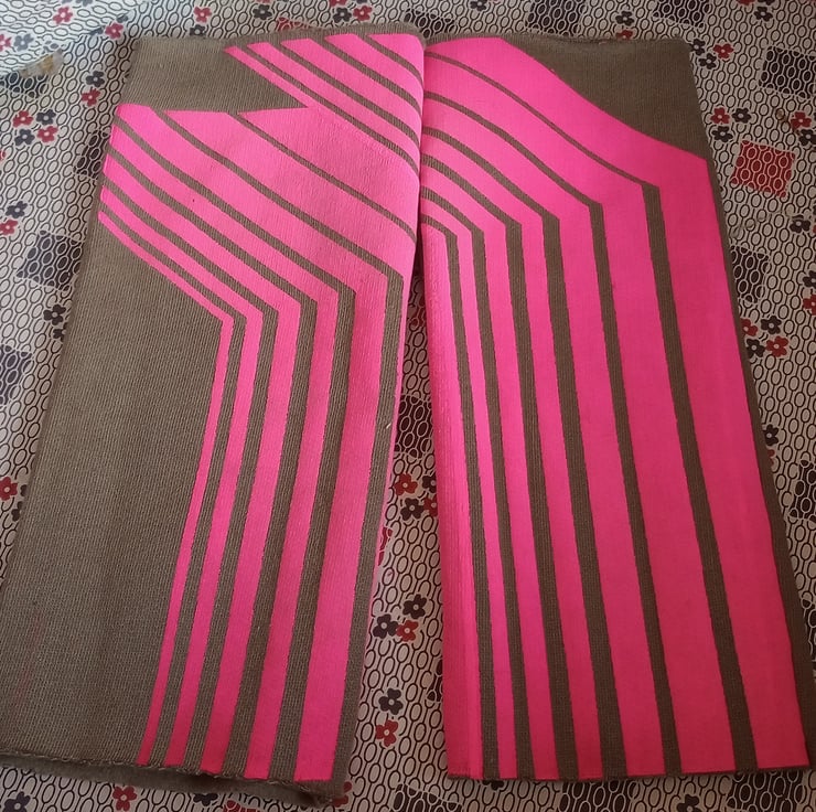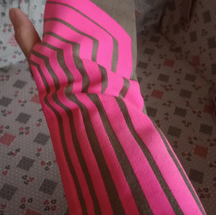 Neon Pink Retro Line Fade Print with puff binder giving a raised puffy texture print
