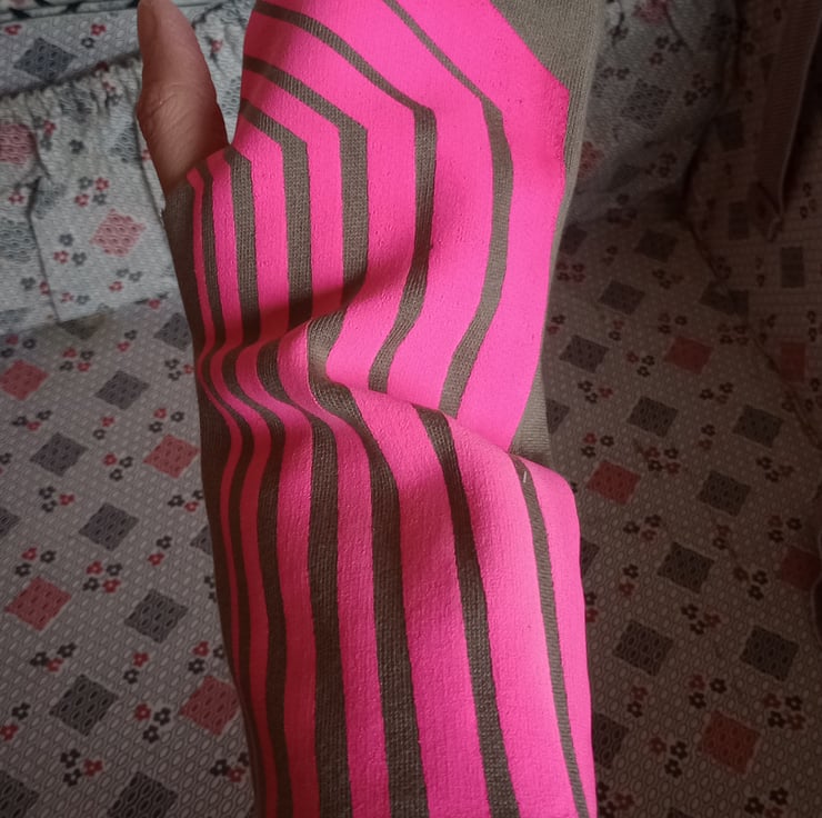 Neon Pink Retro Line Fade Print with puff binder giving a raised puffy texture print