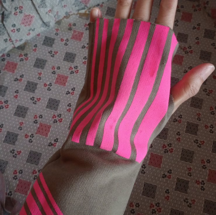 Hand Silk Screen Printed Organic Cotton Jersey Wrist Warmers.