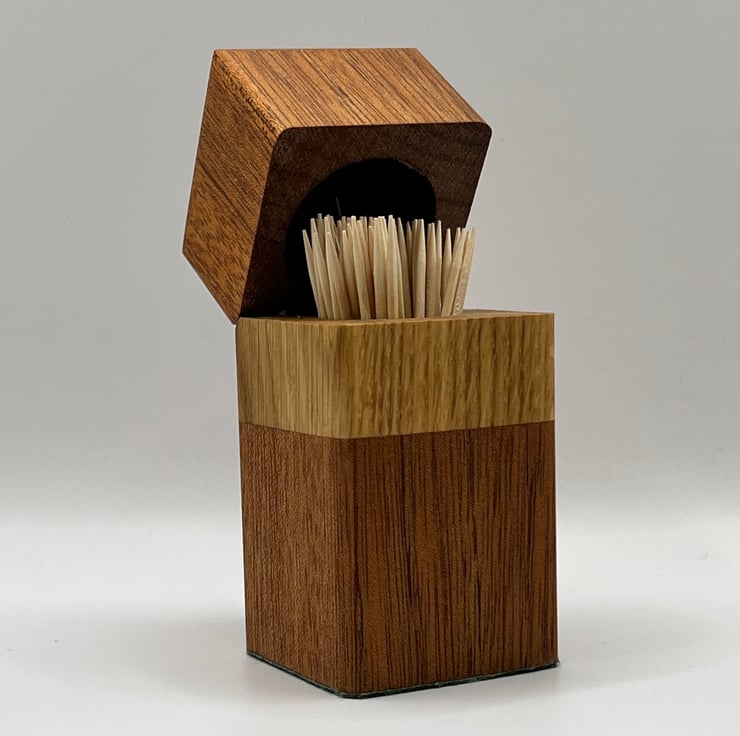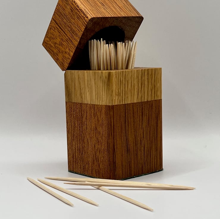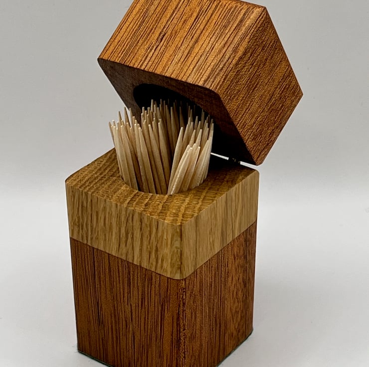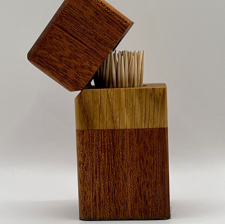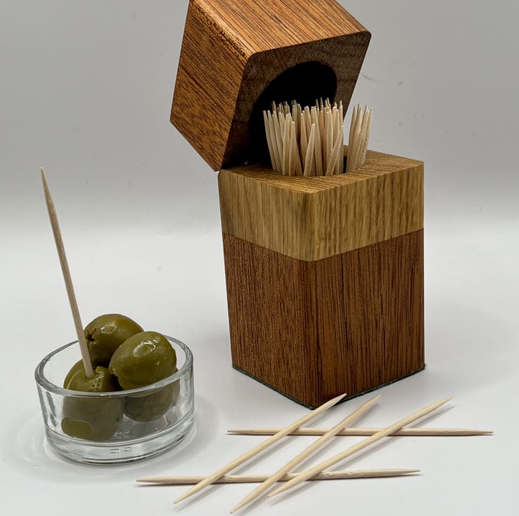 Elevate your dining and entertaining experience with this beautifully handcrafted hardwood cocktail stick holder. Designed with both functionality and style in mind, this compact container is perfect for keeping cocktail sticks (or toothpicks) neatly stored and easily accessible.