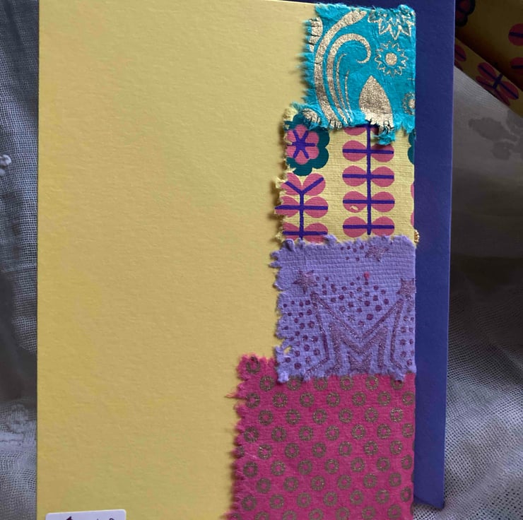 4 bands of pretty torn papers go across this card with 2 pretty flowers at each side of the Best Wishes. The papers have a ripped effect for a softer look