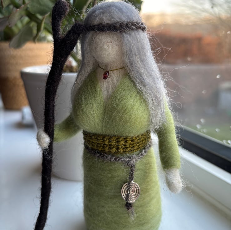 I was inspired to make this beautiful wise crone as part of my coming to terms with my own aging. With my ever whitening hair, the lines on my skin, loss of fertility and the empowering acceptance of me as I am. Still the girl, still the young woman, still the mother, but also so much more.
