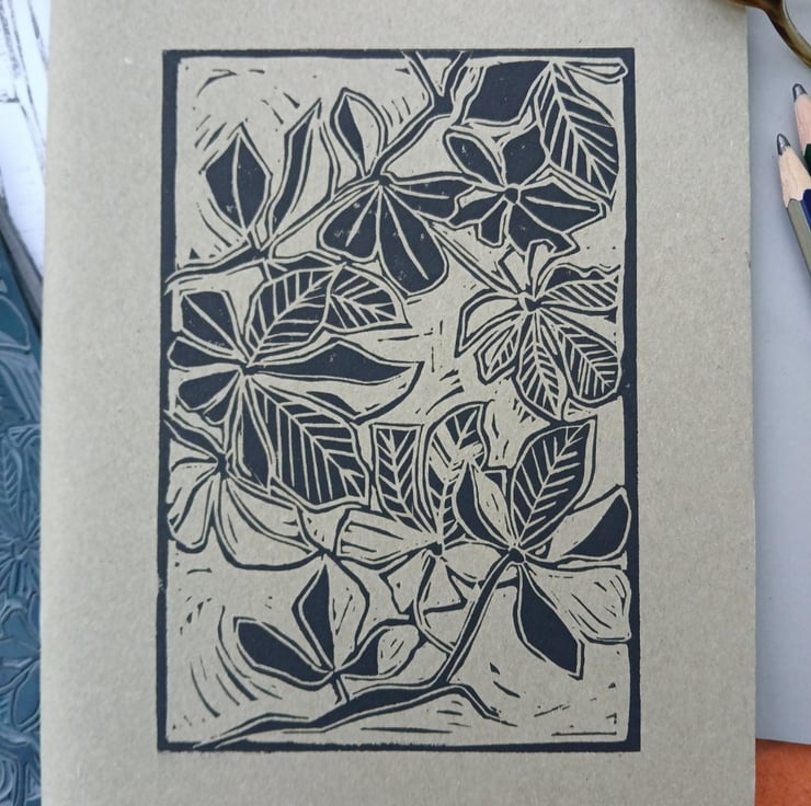 I am always on the lookout for a lovely notebook, generally having two or three on the go at any one time! Here, a lino printed cover gives a hand-crafted boost to an otherwise plain, everyday object.
