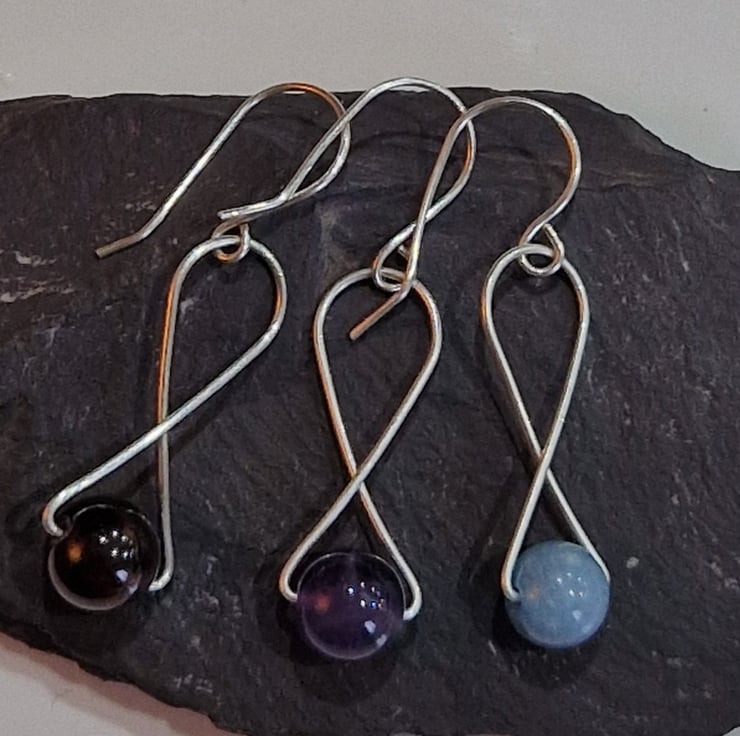 I love silver and semi-precious gemstones together, and I also love that these represent birthstones / zodiac signs. The simple sterling silver wire settings show the colour and shine of the beads off beautifully. I also hand make the wires for my earrings.