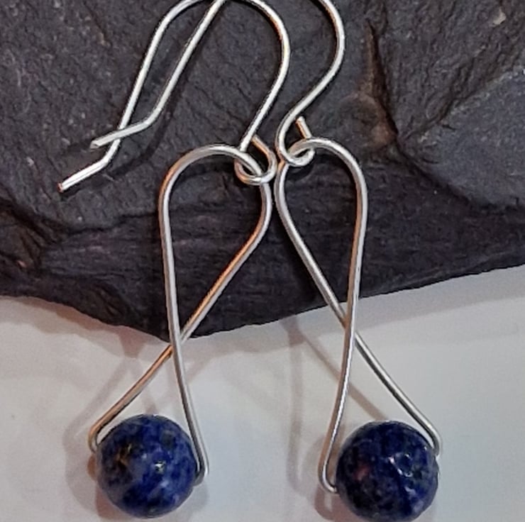 A pair of lovely gemstone and sterling silver earrings. The gemstones are in a sterling silver wire frame, and hang from hand made sterling silver ear wires. Many of the gemstones also correspond to birthstones, as per options below: