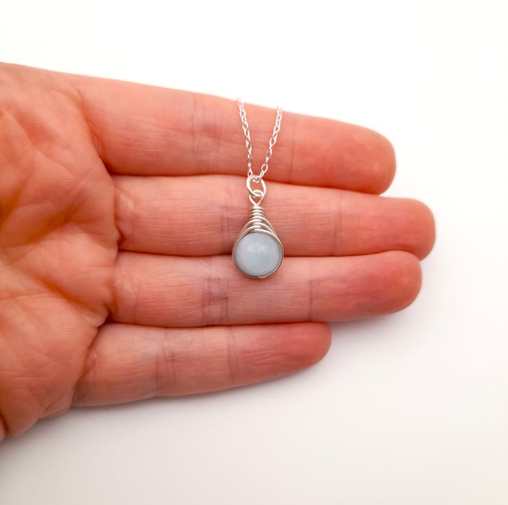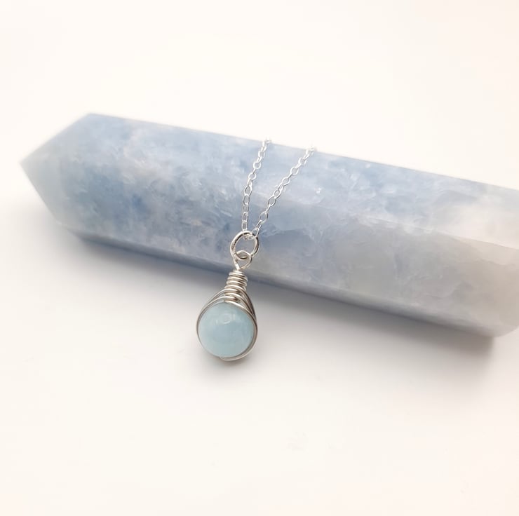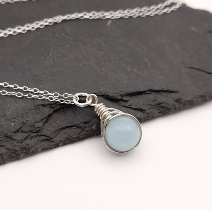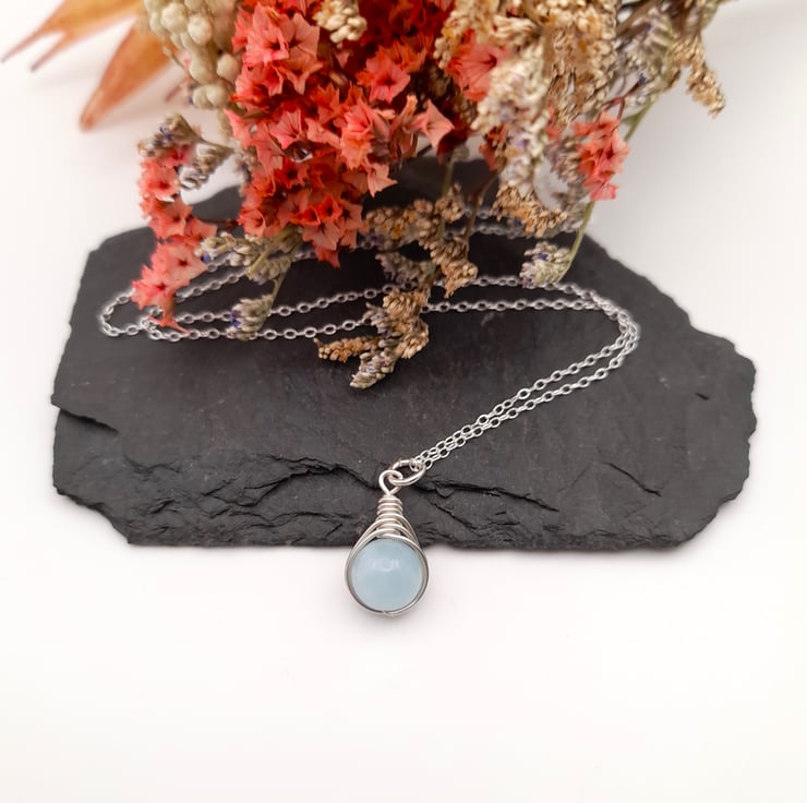 The pendant is approx 2cm long and comes with a sterling silver chain. Aquamarine is a beautiful pale blue colour and is the birthstone for March.