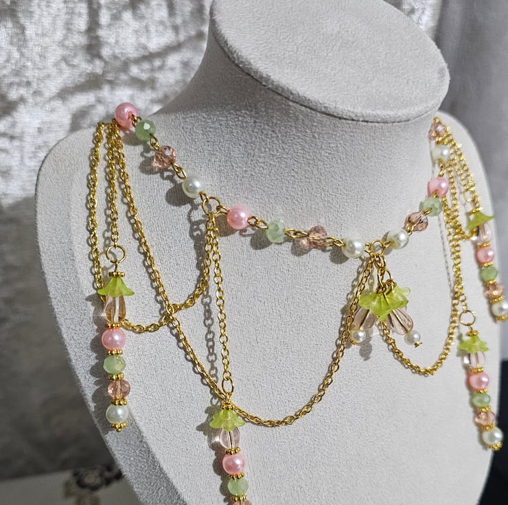 The Blossom Spring Necklace captures the essence of a whimsical, fairycore garden in full bloom.