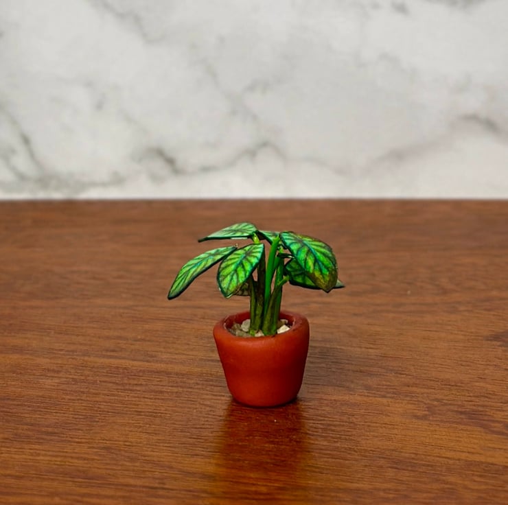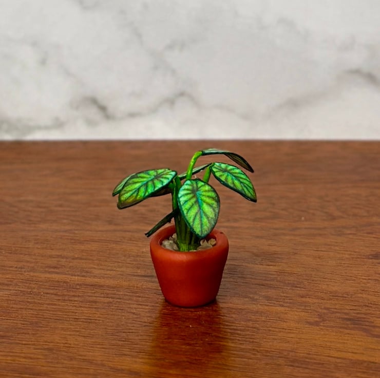 The Alocasia 'Dragon Scale' is a plant that looks like it belongs in a fantasy world. With its textured, scale-like leaves and deep veining, it resembles the skin of a mythical dragon, making it one of the most fascinating houseplants. Inspired by its mystical beauty and bold presence, I wanted to recreate it in miniature form, perfect for dollhouses, dioramas, and collectors.