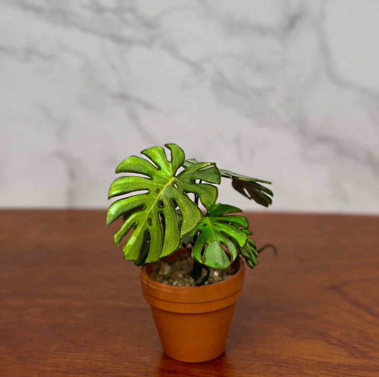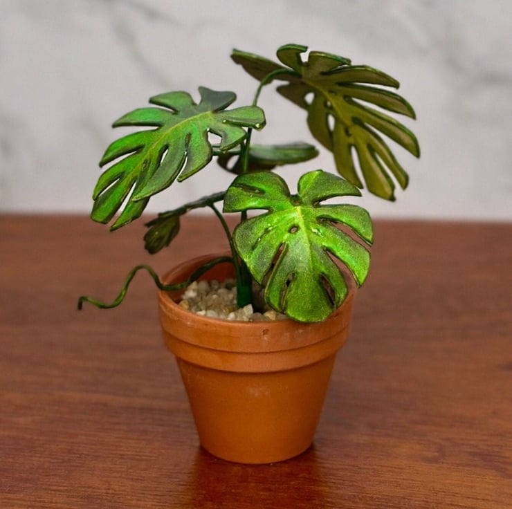 The Monstera, often called the “Swiss Cheese Plant,” is loved for its bold, tropical leaves with natural fenestrations (splits and holes). Symbolizing growth, abundance, and vitality, it brings a refreshing jungle vibe to any space. Inspired by its dramatic foliage, I wanted to recreate its beauty in miniature form, making it perfect for dollhouses, dioramas, and plant collectors.