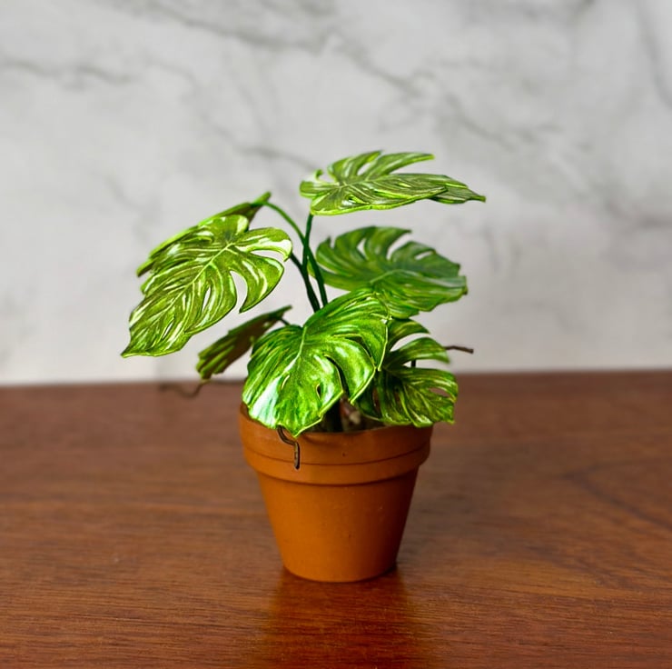 Carefully crafted handmade miniature plant Monstera, in a terracotta clay pot. Each leaves are individually cut, shaped, glued to the stem and assembled in place one by one.